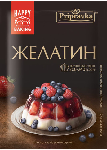ТМ "Приправка" Желатин пищевой 15 г Высококачественный прозрачный быстрорастворимый желатин без запаха. 3-слойный металлизированный пакет с высокими барьерными свойствами. Высококачественные ингредиенты, рекомендуемые для профессионального производства и домашнего использования Линейка разработана и протестирована вместе с профессиональным шеф-кондитером Лизой Глинской Уникальные ингредиенты, не имеющие аналогов в Украине Новые рецептуры, гарантирующие результат