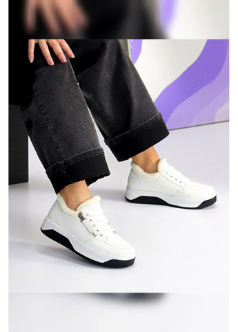 Женские зимние кроссовки из натуральной кожи флотар — тёплая и удобная модель для повседневной носки. Белый верх смотрится аккуратно и стильно, а чёрная подошва делает обувь более практичной зимой. Внутри расположен мягкий эко-мех, который удерживает тепло и обеспечивает комфорт при низких температурах.