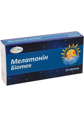 Диетическая добавка в рацион питания. Таблетки Мелатонин Биотек – дополнительный источник веществ для поддержания природных биоритмов. Рекомендуется в качестве дополнительного источника веществ, поддерживающих природные биоритмы. Профилактика нарушений сна, бессонницы, негативных последствий стрессовых реакций, сезонных аффективных расстройств; облегчение адаптации при изменении часовых поясов 1 таблетка содержит: мелатонина – 3 мг (мг). Вспомогательные вещества: лактоза, крахмал, микрокристаллическая целлюлоза, аэросил, стеарат кальция