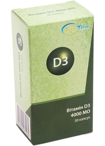 Диетическая добавка Витамин D3 – капсулы, содержащие холекальциферол, регулирующий метаболизм кальция и фосфатов, способствующий нормальной минерализации костной ткани и росту костей. Может быть рекомендовано в качестве диетической добавки для коррекции рациона питания, как дополнительный источник холекальциферола ( Витамин D3). Витамин D3 поддерживает бронхо-легочную, иммунную, нервную, мышечную, эндокринную, репродуктивную и сердечно-сосудистую системы, опорно-двигательный аппарат. Витамин D3 способствует лучшему усвоению кальция и фосфора в организме, способствует регуляции уровня кальция в крови, способствует регуляции обменных процессов, синтеза ферментов и гормонов, способствует улучшению работы мышц, поддерживает кости и зубы в нормальном состоянии. Витамин D3 способствует предотвращению патологических изменений бронхо-легочной системы. 1 капсула содержит холекальциферол (витамин Д3) 4000 MO (IU). Вспомогательные вещества: желатин.