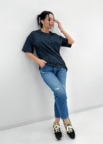 Цвет Темно-синий / Материал Хлопок, Кулир / Фасон С коротким рукавом / Узор Тай-дай / Стиль Спортивный, Повседневный, Кэжуал