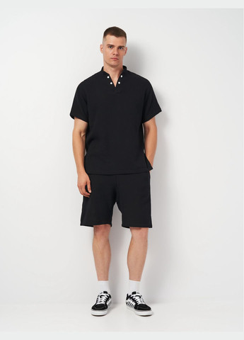 Мужской летний спортивный костюм, шорты и футболка, шорты, пояс на резинке, два боковых кармана, футболка свободная, воротник стойка, декоративные пуговицы.