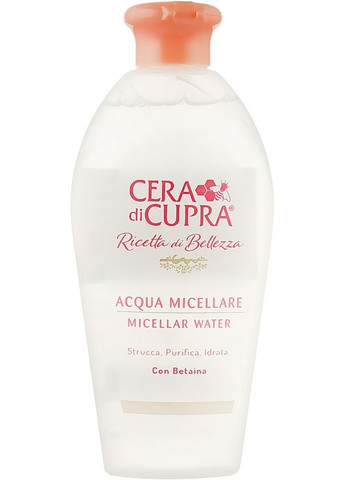 Мицеллярная вода Cera Di Cupra справляется с мгновенным и эффективным устранением загрязнений, макияжа и избыток себума, придавая лицу безупречно чистый и свежий вид. Благодаря супермикроскопическим частицам-мицеллам средство проникает в глубокие слои кожного покрова, расщепляя грязь, пыль и другие загрязнения. Это позволяет придать коже идеальную чистоту без чрезмерного трения ватным диском. Формула мицеллярной воды от Cera Di Cupra содержит увлажняющие компоненты, благодаря чему вы не почувствуете сухости и стянутости. Особенности Cera Di Cupra Micellar Water: - эффективно очищает кожу лица, вокруг глаз и губ; - не нарушает оптимальный pH баланс кожи; - формула на основе бетаина для интенсивного увлажнения; - натуральный сахар и гиалуроновая кислота позволяют удерживать влагу внутри кожи, препятствуя появлению сухости и антиоксидантное и защитное действия; - препятствует раздражению кожи; - обладает успокаивающими свойствами; - оказывает легкий лифтинговый эффект.
