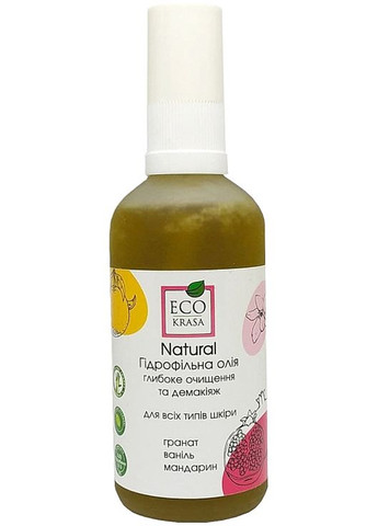 Созданная для деликатного демакияжа и глубокой очистки гидрофильное масло от бренда Eco Krasa содержит высокую концентрацию натуральных ингредиентов, что обеспечивает коже дополнительный уход. Она не нарушает оптимальный гидролипидный баланс эпидермиса, сохраняет здоровый микробиом и не оставляет дискомфортного ощущения стянутости. Особенности гидрофильного масла «Глубокая очистка и демакияж» от бренда Eco Krasa: - деликатно расщепляет даже стойкие средства декоративной косметики; - эффективно устраняет из кожи загрязнения, себум, пот, омертвевшие дольки и бактерии; граната оказывает антиоксидантное действие и обладает укрепляющими свойствами; - экстракт ванили успокаивает раздражение и снимает воспаление; - эфирное масло мандарина освежает, тонизирует и сужает расширенные поры.