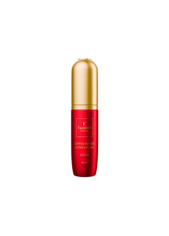 Особенности Famirel Copper Peptide Lifting Serum: подходит для всех типов кожи легкая проникающая текстура борется с тонкими линиями и морщинами гиалуроновая кислота ускоряет регенеративные процессы в коже, удерживает влагу, замедляет разрушение коллагена глицерин увлажняет кожу, сохраняя влагу и помогая клеткам удержать ее масло авокадо питает, увлажняет и смягчает кожу, делает ее упругой и эластичной масло ши активно питает, увлажняет, регенерирует и омолаживает трипептид меди-1 стимулирует появление молодых клеток, синтезирует коллаген и эластин, накапливает влагу и увеличивает толщину эпидермиса ретинол (витамин А) ускоряет обмен клеток в коже, способствуя более быстрому восстановлению и уменьшению морщин соль Мертвого моря насыщает микроэлементами и минералами Способ применения: легкими прикосновениями или массирующими движениями нанесите сыворотку на предварительно очищенную кожу лица и шеи. Подождите несколько минут, пока сыворотка полностью впитается.