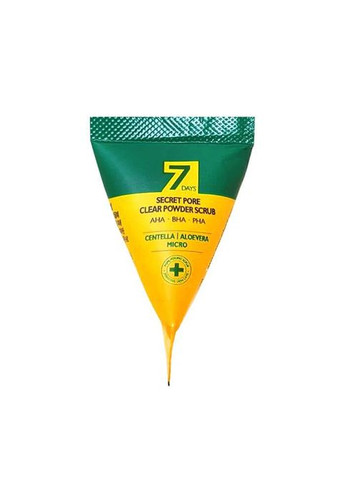 Скраб для глубокой очистки пор с центелой May Island 7 Days Secret Pore Clear Powder Scrub: • Мягко отшелушивает и удаляет ороговевший слой эпидермиса. • Эффективно устраняет загрязнения, излишки кожного сала и черные точки. • Лечит воспаление и акне, снимает красноту и успокаивает. ☝️ Имеет мягкую, кремообразную консистенцию и содержит очень маленькие абразивные частицы, что позволяет не повреждать гидролипидный слой кожи при использовании скраба. 🌿 Скраб содержит 3 вида кислот, действие которых направлено на обновление и восстановление кожного покрова: • АНА-кислоты отшелушивают ороговевший слой эпидермиса, удаляют мертвые клетки кожи и другие загрязнения. • ВНА-кислоты растворяют камедоны, помогают очистить кожу от более глубоких, подкожных загрязнений и излишков себума в порах, нормализует водно-жировой баланс кожи. • РНА-кислоты предотвращают потерю влаги и мягко отшелушивают, успокаивают и устраняют раздражение на коже. 🌿 Дополнительные компоненты: • Экстракт центели азиатской — оказывает противовоспалительное и ранозаживляющее действие, способствует восстановлению барьерных свойств кожи и содержанию влаги, снижает чувствительность кожи, уменьшает отеки, оказывает сосудоукрепляющее действие и уменьшает купероз. • Экстракт алоэ — обладает антибактериальным, противовоспалительным, успокаивающим, ранозаживляющим и антиоксидантным эффектом. Обладает тонизирующим и охлаждающим действием. Эффективно борется с кожными воспалениями, препятствует размножению бактерий и предотвращает появление акне. • Экстракт зеленого чая – отлично снимает раздражение, обладает антибактериальными свойствами, делает упругой и эластичной кожу, разглаживает морщины, улучшает цвет лица. ❗️ Подходит для проблемной, жирной и комбинированной кожи ➡ Применение: Распакуйте упаковку со скрабом, нанесите на влажную кожу лица, делайте легкий массаж лица в течение 1-3 минут, особое внимание уделяя T-зоне и проблемным участкам. Умойтесь теплой водой. 💚 Объем: 5 гр. (1 пирамидка).