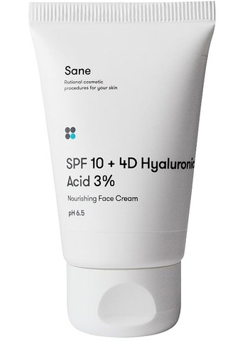 Украинский бренд Sane вдохновенно приумножает индустрию красоты качественной косметикой ухода, презентуя в компактных тюбиках функциональные средства с разными свойствами. На этот раз популярный производитель поразил своих поклонников питательным кремом для лица – сочетанием гиалуроновой кислоты и защитного фильтра SPF 10. Бархатная консистенция впитывается в глубокие слои эпидермиса, способствует его немедленному питанию, восстановлению, укреплению и защите. 4D Hyaluronic Acid 3% Nourishing Face Cream pH 6.5 имеет оптимальный уровень кислотности, не вредя микробиому, а наоборот – предохраняет его от неблагоприятных погодных условий, агрессии окружающей среды, что может быть провокатором появления сухости, тусклости, шелушений, покраснений на лице. Особенности SPF10 + 4D Hyaluronic Acid 3% Nourishing Face Cream pH 6.5 бренда Sane: - имеет SPF, противодействующий агрессии ультрафиолета; - активно борется со свободными радикалами - предвестниками фотостарения; - замедляет формирование преждевременных возрастных изменений на лице; - содержит уникальный комплекс; - эфирное масло бабушки насыщает эпидермис липидами, витаминами А, С, D, E, PP, К; - лауриновая, меристиновая, олеиновая и стеариновая кислоты заботятся о его микрофлоре; - Adeplump ускоряет синтез эластичность кожи; - 4 вида гиалуроновой кислоты нормализуют и поддерживают гидробаланс; - укрепляет защитный барьер, липидную мантию; - предотвращает испарение ценной влаги; - все компоненты средства размещены в липосомах, строение которых в совершенстве усваивается; не диссонирует с декоративной косметикой; - оптимальный для использования в качестве основы под макияж; - деликатно смягчает загрубевшие участки, поврежденные восстанавливающие.