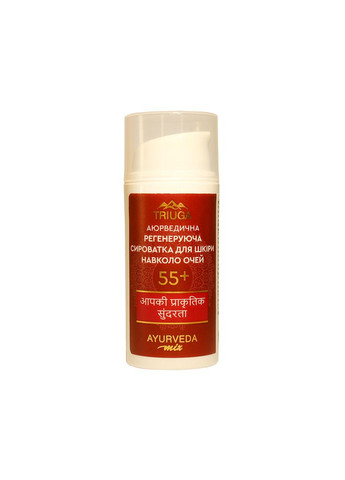 Аюрведические знания ценятся своим подходом и философией. Если индийская медицина не является для вас пустым звуком, самое время стать ближе к ее истокам. Бренд Triuga является ярким представлением аюрведического ухода, способного перевернуть ваше представление о косметике. Его энергосыворотка для кожи вокруг глаз позволяет взглянуть на мир свежим, отдохнувшим взглядом. Формула продукта содержит миндальное масло, гиалуроновую кислоту, кофеин, экстракт зеленого чая и ресвератрол. Это ключевые компоненты, которые готовы сразиться за красоту и молодость вашей кожи! Особенности энергосыворотки для кожи вокруг глаз 45+ от Triuga: - заметно уменьшает глубину морщин и предотвращает появление новых; - повышает выработку коллагена и эластина; - миндальное масло обладает питательными свойствами; - гиалуроновая кислота пролонгирует увлажняющий эффект; - кофеин активизирует кровообращение, тонизирует и устраняет темные круги; - экстракт зеленого чая обладает антиоксидантными свойствами; - ресвератрол – природный биофлавоноид, оказывает антиоксидантное и противовоспалительное действие.