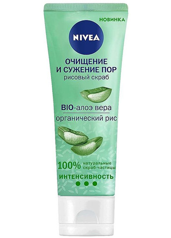 Рисовый скраб для лица NIVEA – продукт, который не просто очищает кожу, но и способствует ее естественному обновлению. Эксперты разработали его на основе полностью натуральных ингредиентов: измельченных зерен японского риса и биологического алоэ вера. Наслаждайтесь чистотой, свежестью и ровным тоном с рисовым скрабом для лица «Очистка и сужение пор» NIVEA! Особенности рисового скраба для лица «Очистка и сужение пор» от NIVEA: - глубоко очищает и сужает поры; - устраняет черные точки; - эффективно удаляет отмершие клетки кожи, не травмируя ее; Рисовый скраб глубоко очищает поры, избавляет от черных точек и сужает поры. Его мягкая текстура нежно эксфолирирует, оставляя кожу гладкой и сияющей. Используйте скраб не чаще двух раз в неделю. Избегайте попадания в глаза. Не наносить на раздраженную и поврежденную кожу.