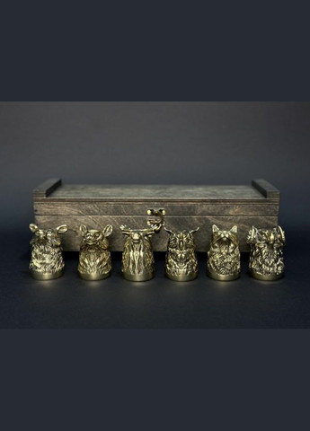 Стопки бронзовые перевертыши Люкс Nb Art Звери 6 шт 30 мл 48440021 в деревянном кейсе из бука 1. Рюмка: художественное литье из бронзы, внутри покрытые пищевым булатом. Высота 60 мм, ширина 40 мм, объем 30 мл, вес 200 грамм. 2. Подарочный кейс: материал коробки – дерево бук Все рюмки ставятся на голову!