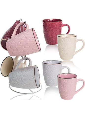 Набор кружек "Heart" — это идеальное решение для тех, кто ценит стиль и уют в каждодневной жизни. Этот набор включает в себя 4 керамические кружки объемом 350 мл, выполненные в нежных и современных цветах: бордовом, розовом, кремовом и сером. Каждая кружка не только удобна в использовании, но и станет ярким акцентом на вашем столе. Металлическая хромированная стойка, на которой располагаются кружки, устойчива к коррозии, что обеспечивает долговечность и сохранность внешнего вида. Такой набор не только практичен, но и эстетически привлекателен, что делает его отличным дополнением к любой кухне или столовой. Преимущества: Эстетика: Нежные цвета кружек добавляют уюта и стиля в интерьер. Качество: Керамика гарантирует долговечность и сохранение вкусовых качеств напитков. Удобство: Объем 350 мл идеально подходит для чая, кофе или горячего шоколада. Практичность: Металлическая подставка обеспечивает надежное хранение кружек и предотвращает их повреждение. Упаковка: Набор поставляется в фирменной коробке, что делает его отличным подарком для близких и друзей. Этот набор предназначен для всех, кто любит наслаждаться горячими напитками в компании. Он отлично подойдет для семейных вечеров, встреч с друзьями или романтических ужинов. Кроме того, набор станет прекрасным подарком на любой праздник, будь то день рождения, свадьба или новоселье. Выбирая набор кружек "Heart", вы получаете не только практичный аксессуар, но и элемент декора, который создаст атмосферу тепла и уюта в вашем доме. Не упустите возможность сделать каждый ваш чайный или кофейный перерыв особенным!