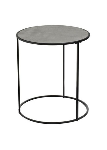 Стильный и практичный приставной столик, подходящий для любого современного интерьера. Стол спроектирован с прочной черной металлической рамой и прочной круглой столешницей из МДФ с цементным эффектом, что придает ему индустриальный вид. Три металлические ножки соединены базовым кольцом для дополнительной устойчивости. Подходит для использования в помещении — идеально подходит для размещения книг, напитков или декоративных аксессуаров.