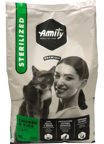 Повседневный корм для стерилизованных питомцев с мясом птицы. Стерилизованные кошки и кастрированные коты требуют особого подхода к питанию. В линейке испанских кормов Amity есть подходящий рецепт. Мясо птицы, овощи и рыба – отличный тандем для обеспечения повседневного питания любимого питомца. В составе корма также необходимые минералы и витамины, что избавит хозяина от тревог о их недостаче в рационе пушистика. Используя рекомендованные нормы кормления, корм может быть использован, как повседневный для питомцев, ведущих активный образ жизни. Заботиться о питании — легко, вместе с рецептами корма Amity. Состав: Дегидрированное мясо (птица мин. 4%), зерновые, субпродукты растительного происхождения (свекольный жмых), овощи (бобовые мин 4%), рыба и рыбные субпродукты 4%, птичий жир, витамины и минералы. Гарантированный анализ: Сырой протеин — 30.0%, Сырой жир — 9.0%, Клетчатка — 4.50%, Влага — 10.0%, Зола — 8.50%. Витамины и минералы: Витамин А — 14400 МЕ/кг, Витамин D — 1080 МЕ/кг, Витамин E (dl-токофе- ролацетат) — 180 мг/кг, Таурин — 1100мг/кг, Железо — 162 мг / кг, Медь — 15 мг/кг, Марганец — 16 мг/кг, Цинк — 117 мг/кг, Йод — 8.0 мг/кг, Селен — 0.46 мг/кг, антиоксиданты. Суточные нормы кормления для котов проживающих в квартире: 2 кг — 30 г; 3 кг — 50 г; 4 кг — 65 г; 5 кг — 80 г; 6 кг — 95 г. Для активных питомцев: 2 кг — 40 г; 3 кг — 55 г; 4 кг — 75 г; 5 кг — 95 г; 6 кг — 115 г. Для стерилизованных питомцев: 2 кг — 25 г; 3 кг — 38 г; 4 кг — 50 г; 5 кг — 63 г; 6 кг — 75 г. Способ применения: Скармливать согласно суточных рекомендаций. Чистая питьевая вода должна быть доступна в любое время. Хранить в сухом, хорошо проветриваемом месте, вдали от солнечного света. После использования мешок плотно закрывать. [5] Производитель: ALINATUR PETFOOD S.L., Испания.