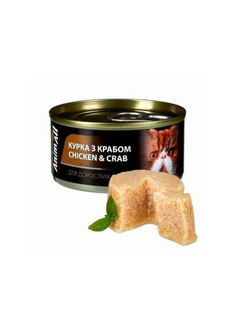 АнимАлл влажный корм для кошек. Дуо Делис. Паштет из курицы с кусочками краба 80 гЭтот влажный корм для кошек представляет собой нежное сочетание высококачественного куриного мяса и кусочков натурального краба. Он разработан, чтобы удовлетворить даже самых взыскательных кошечек с изысканным вкусом.Паштет производится из свежих куриных филе и натуральных кусочков краба, что обеспечивает высокое качество белка и вкусный вкус.Этот корм богат белок, необходимый для поддержания здоровья и мышечной массы вашей кошки.Сбалансированный состав Продукт разработан с учетом потребностей кошек в витаминах и минералах, чтобы обеспечить полноценное питание.Отсутствие искусственных красителей и ароматизаторов: Паштет не содержит искусственных добавок, что делает его более натуральным и безопасным для пушистого друга.Состав: мясо курицы 40,0 %, куриное сердце 6,0 %, куриная печень 5,0 %, мясо краба 4 %, вода 40,7 %, кукурузный крахмал 4 %, каррагенан (Е407) 0,2 %, таурин (3А370) 0,05%, карбонат кальция (Е170) 0,05%.Пищевая ценность: сырой протеин: мин 10,0%, сырая клетчатка: макс 1,0%, сырой жир: мин 1,0%, сырая зола: макс 3,0%, влажность: макс 85%.Изготовлено под заказ и под контролем TM AnimAll.Произведено: PRC.