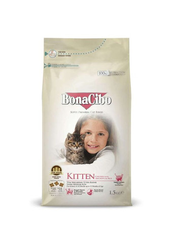 БОНАСИБО Киттен обогащенный витаминами, аминокислотами, омега-6 и омега-3 в правильном соотношении для отличного здоровья и сияющей шерсти.