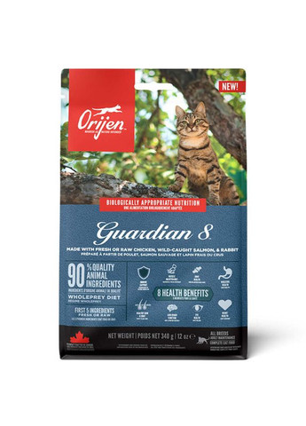 Биологически соответствующий корм Orijen Guardian 8 для кошек всех пород и возрастов. Полнорационный корм Orijen Guardian 8 Cat изготовлен из свежих или сырых мясных ингредиентов, таких как курица, лосось, индейка, сельдь, скумбрия и кролик. Питательный рацион был специально разработан, чтобы противостоять 8 основным недугам кошек: Поддержка иммунитета. Поддерживает иммунную функцию с помощью EPA и DHA из дикой рыбы и антиоксидантных питательных веществ из ингредиентов, включая фрукты и овощи Здоровье пищеварительной системы. Помогает пищеварению благодаря пребиотикам, таким как сушеный корень цикория и клетчатка из фруктов и овощей Здоровая кожа и шерсть. Поддерживает блестящую шерсть и здоровую кожу благодаря Омега-3 жирным кислотам из масла дикого минтая Здоровье сердца. Помогает поддерживать здоровье сердца благодаря таурину, содержащемуся в источниках животного белка, таких как птица, рыба и яйца Поддержание мышц. Содержит 90% ингредиентов животного происхождения, таких как курица, лосось и индейка, которые способствуют поддержанию мышечной массы у вашей кошки Здоровье суставов. Поддерживает здоровье суставов взрослых и пожилых кошек, благодаря содержанию Омега-3 жирных кислот из масла минтая, выловленного в дикой природе Помогает работе мозга. Помогает поддерживать когнитивные функции благодаря маслу из дикого минтая, богатому ДГК и ЭПК, а также природному аргинину из птицы и рыбы Здоровье глаз. Поддерживает функцию сетчатки с помощью природного таурина и витамина А из животных источников, таких как печень курицы и индейки Преимущества корма Orijen Guardian 8: Первые 5 ингредиентов — это свежая или сырая птица и рыба 90% богатых белком источников животного происхождения, 10% — фрукты, овощи и питательные вещества, без добавления зерновых ингредиентов, сои, кукурузы, пшеницы или тапиоки Не идя по сравнению с любыми другими кормами для кошек, 2/3 мясных ингредиентов в составе Ориджен являются свежими (охлажденными, без добавления консервантов) или сырыми (мгновенно замороженными, без добавления консервантов), включая топ 10 мясных ингредиентов Высокопитательное соотношение ингредиентов WholePrey, включая мясо, органы и хрящи в сочетании с цельной рыбой и цельными гнездовыми яйцами, является естественным источником практически всех питательных компонентов, необходимых котам. С гордостью приготовлен в Канаде из лучших мировых ингредиентов!