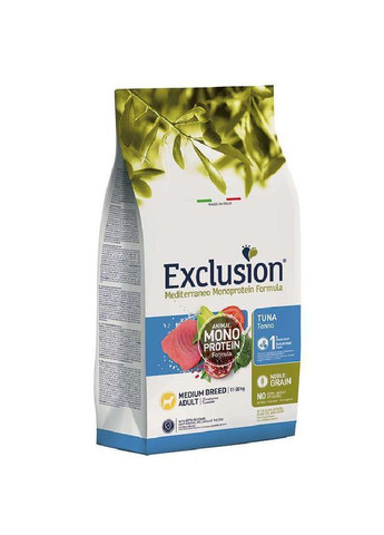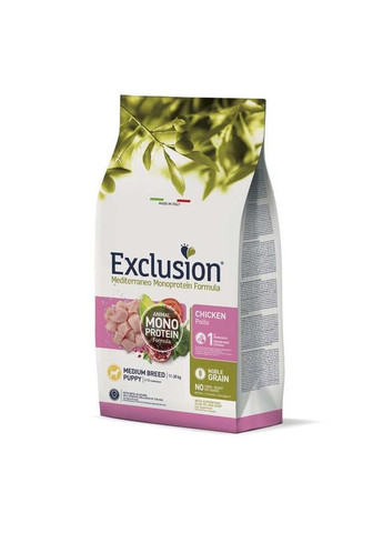 В составе корма только полезные компоненты, которые обеспечат вашу собаку всем необходимым. Все важные витамины и минералы уже есть в составе корма. Животное будет активным и здоровым, радостным и довольным. Качественное питание – это не только удовольствие для питомца, а и забота о его здоровье на долгие годы вперёд. Здоровье суставов, прекрасная шерсть и здоровая кожа – необходимый минимум качества жизни животного. Эксклюжн заботиться об этом ежедневно! Преимущества и особенности: Монопротеиновая формула: рацион содержит дегидрований монопротеин животного происхождения, что делает его еще более питательным. Рецептура разработана настолько совершенно, что корм полностью соответствует пищевым потребностям животного. Высококачественное зерно: рацион содержит зерно одного вида высокого качества. Не содержит кукурузу, пшеницу и сою. Поддержка иммунитета: β-1,3-глюканы водорослей Euglena gracilis укрепляют иммунную систему организма. Средиземноморский Суперфуд: конопля, оливковое масло, помидор, гранат, брокколи и цикорий богатые антиоксидантами, которые нейтрализуют свободные радикалы и помогают защитить организм от оксидативного стресса и его последствий. Здоровье суставов: глюкозамин и хондроитина сульфат способствуют физиологическому развитию суставов и поддерживают их здоровое состояние. Блестящая шерсть: масло рыжика обеспечивает здоровое состояние кожи и шерсти. Без добавления куриного жира: не содержит куриного жира. Натуральные консерванты: содержит только натуральные консерванты, для поддержания свежести корма и хороших вкусовых свойств. Состав: дегидрированное мясо курицы (30%), рис, горох, свиной жир, гидролизованный протеин животного происхождения с низкой молекулярной массой, конопля (1%), дрожжи, дегидрированная люцерна, сушеный цикорий (0,5%), хлорид натрия, масло рыжика (0,3%), оливковое масло (0,3%), β-1,3 глюканы водорослей Euglena gracilis (0,06%), глюкозамин (0,04%), дегидрированное брокколи (0,03%), дегидрированный гранат (0,03%), дегидрированный томат (0,03%), юка моджевое, хондроитина сульфат (0,01%) Пищевые добавки (на 1 кг) витамин А – 10.850 МЕ, витамин D3 – 540 МЕ, витамин Е – 500 мг, витамин С – 55 мг, витамин В1 – 9 мг, витамин В2 – 5 мг, витамин В3 – 22,5 мг, витамин В6 – 10 мг, витамин В12 – 0,2 мг, фолиевая кислота – 1,6 мг, витамин Н – 1,6 мг, бетаин – 1,160 мг, медь (сульфат меди пентагидрат) – 11,5 мг и (хелат меди гидрат аминокислот) – 5 мг, цинк (оксид цинка) – 110 мг и (хелат цинка гидрат аминокислот) – 47 мг, марганец (оксид марганца) – 26 мг и (хелат марганца гидрат аминокислот) – 11 мг, (калия йодид) – 3,4 мг, селен (селенит натрия) – 0,3 мг, железо (карбонат железа) – 178 мг Аналитические компоненты: 25% – сырой белок 16% – сырой жир 6% – сырая зола 2,3% – сырая клетчатка 8% – влажная 1,1% – кальций 0,9% – фоcфор Рекомендации по кормлению: Вес собаки, кг 11 13 15 17 20 25 30 Кол-во корма, г 130-150 150-180 160-190 180-210 220-250 270-300 320-350 Из-за индивидуальных различий между собаками разных пород указанные количества могут отличаться на +/- 20%. У собаки всегда должно быть доступно достаточное количество чистой питьевой воды. Фасовка: 12 кг Производитель: Exclusion, Dorado S.r.l., Италия