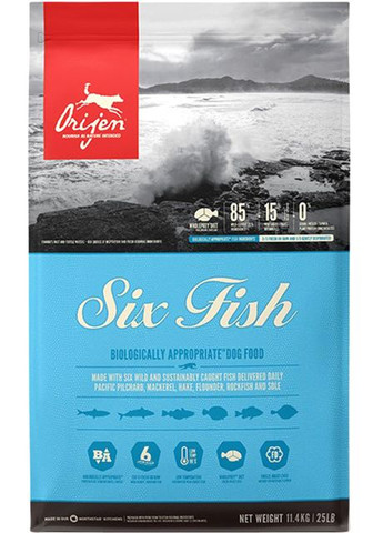 Сухой корм для собак всех пород Orijen 6 Fish Dog — биологически соответствующий корм для собак всех пород и всех стадий жизни. Непревзойденное разнообразие свежей рыбы, выловленной в холодных водах Тихого океана, у берегов острова Северный Ванкувер. Особенности: Высокопротеиновый (38%), с ограниченным количеством углеводов (18%), Orijen 6 Fish обеспечивает питание всех собак на всех стадиях жизни, в соответствии с их эволюционными и биологическими потребностями Не идя в сравнение с любыми другими кормами для собак, 2/3 рыбы в составе Orijen является свежей (охлажденной, без добавления консервантов) или сырой (мгновенно замороженной, без добавления консервантов), включая топ 6 рыбных ингредиентов в составе 1/3 – это рыба, высушенная при температуре 90 °C – концентрированный источник протеинов из рыбы Высокопитательное соотношение рыбных ингредиентов WholePrey, включая мясо рыбы, органы и хрящи является природным источником практически всех питательных компонентов, необходимых собакам Ингредиенты: Свежая цельная тихоокеанская сардина (18%), свежая цельная тихоокеанская макрель (13%), свежий цельный тихоокеанский хек (12%), свежая цельная тихоокеанская камбала (5%), свежий цельный морской окунь (5%), свежая цельная солея (5%), цельная макрель (дегидратированная, 5%), цельная сельдь (дегидратированная, 5%), цельная треска (дегидратированная, 4.5%), цельная сардина (дегидратированная, 4.5%), цельная путассу северная (дегидратированная, 4%), жир из сельди (4%), красная чечевица, зеленая чечевица, зеленый горошек, клетчатка чечевицы, нут, желтый горошек, подсолнечное масло (холодного отжима), фасоль пестрая, печень трески (лиофилизированная), тыква, мускатная тыква, цуккини, пастернак, морковь, яблоки, груши, капуста Кале, шпинат, зелень свеклы, зелень репы, ламинария, клюква, цельная черника, ягоды ирги, корень цикория, корень куркумы, расторопша, корень лопуха, лаванда, корень алтея, плоды шиповника. Добавки (в 1 кг): пищевые добавки: цинка хелат 100 мг, меди хелат: 11 мг; зоотехнические добавки: Enterococcus faecium NCIMB10415: 600x10 ^ 6 КОЕ. Энергетическая ценность и ее распределение: 3860 ккал / кг или 465 ккал на чашку 250 мл (120 г), где источником 39% энергии является протеин, 19% фрукты и овощи, 42% из жира. Кормление: Используйте стандартную 250 мл мерную чашку. Давайте корм сухим или слегка смоченным. Чтобы максимально сохранить свежесть корма, мы рекомендуем закрывать плотно мешок и хранить его в сухом прохладном месте. Вес: 11.4 кг.