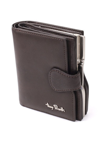 Материал: натуральная кожа; Размеры (ШхВхГ, см): 9,5х12,3х3,5 см; Цвет: черный; Страна производитель: Италия. Особенности: – мягкая натуральная кожа – приятная на ощупь, прочная и долговечная. – два основных отделения для купюр – удобное хранение. – два прилегающих кармана – дополнительное пространство для документов. – монетница на механической защелке – надежность и практичность. – карман под сеточкой – удобный доступ к мелким документам. – двенадцать слотов для кредитных карт – продуманная организация. – закрытие на хлястик с кнопкой – надежная фиксация. – металлический логотип бренда в нижнем правом углу – акцент на стиль и оригинальность. Женский вертикальный кошелек Tony Perotti – стиль и функциональность в каждой детали. Кошелек выполнен из мягкой натуральной кожи черного цвета, которая приятно лежит в руке и отличается долговечностью. Внутри предусмотрены два основных отделения для купюр, два прилегающих кармана, монетница на механической защелке, карман под сеточкой и двенадцать слотов для кредитных карт. На лицевой стороне в нижнем правом углу расположен металлический логотип бренда, подчеркивающий аутентичность и элегантность изделия. Закрывается хлястиком на кнопку, что обеспечивает удобство и надежность в использовании. Такой кошелек сочетает элегантность, комфорт и продуманную функциональность, подчеркивая вкус и стиль своей обладательницы.