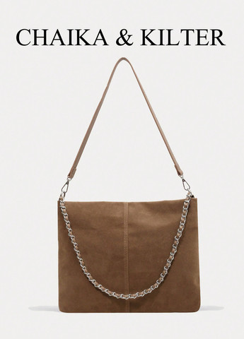 Сумка через плечо из однотонной замши. Эта сумка имеет внешнюю часть из замшевой ткани. Она предлагает достаточную вместимость для ежедневного использования. Сумка включает в себя металлический цепной ремень. Застежка-молния защищает содержимое. Она предназначена для модных выходов.