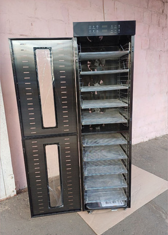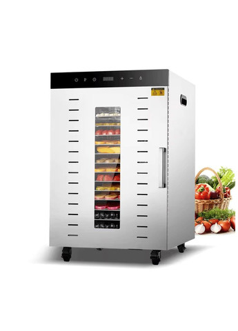 Дегидратор коммерческий Tekhniko DH-20H-BK черный (20 лотков) Коммерческий дегидратор Tekhniko DH-20H-BK commercial (20 лотков) Модель: DH-20H-BK Цвет: черный Мощность: 2000 Вт (макс.) Номинальная мощность: 1500 Вт Количество лотков: 20 шт Размер лотка: 40*38 см Высота между лотками: 35 мм Вместимость сырых продуктов на 1 лотке: ~ 1,5 кг Общая вместимость сырых продуктов: ~ 30,0 кг Напряжение: 220-240 В, 50 Гц Температура: 30~90°C (шаг 5°C) Таймер, диапазон времени: 0-24 часа (шаг 30 мин) Уровень шума: 50-55 дБ Размер: Ш 46,5*Г 57,0*В 82,0 см (без колес) Вес: 29,0 кг Габариты упаковки: Ш 54 * Г 64 * В 89,5 см Вес в упаковке: 33,5 кг Гарантия: 12 мес Особенности: 3 вентилятора - горизонтальная система сушки Светодиодный дисплей Двухслойный корпус из нержавеющей стали Внутренняя светодиодная подсветка Оцинкованный поддон для крошек и воды Магнитные замки дверицы 4 транспортировочных колеса Лотки из нержавеющей стали SUS304 Корпус из нержавеющей стали SUS201 Алюминиевая ручка Свойства: 20 лотков большой емкости, вмещает 30 кг свежих продуктов. 3 двигателя + 3 системы сушки лопастным вентилятором - лучший эффект и более высокая эффективность. Горизонтальная равномерная сушка Размер лотков составляет 400 X 380 мм, а зазор (высота) между двумя лотками составляет 350 мм. Прозрачное закаленное стекло, удобно для наблюдения за сушкой внутри. Возможность сушить все виды фруктов, овощей, мяса, рибы, морепродуктов, злаков, трав, бобов, закусок и т. д. Точное цифровое управление, простота в эксплуатации, низкий уровень износа деталей. Корпус из нержавеющей стали SUS201 толщиной 0,6-0,8 мм, лотки из нержавеющей стали SUS304 Комплектация: Дегидратор Tekhniko DH-20H-SS 20 лотков из нержавеющей стали 2 шт - 2 шт - Поддон для сбора воды и крошек Книга рецептов (укр.язык) Инструкция (укр.язык) Гарантийный талон Гарантийный срок 24 мес! Все модели дегидраторов Tekhniko сертифицированы в Украине и имеют СЕРТИФИКАТ СООТВЕТСТВИЯ и ДЕКЛАРАЦИЮ О СООТВЕТСТВИИ, что подтверждает их соответствие требованиям национальных стандартов. Больше моделей на официальном сайте Это коммерческий дегидратор Tekhniko DH-20H commercial, который имеет мощность 2000 Вт (max) и номинальную мощность 1500 Вт. Он оснащен 20 лотками размером 40*38 см и высотой между лотками 35 мм. Его вместительность сырых продуктов на 1 лотке составляет примерно 1,5 кг, а общая вместительность сырых продуктов - около 30 кг. Этот дегидратор работает при напряжении 220-240 В, 50 Гц, и может достигать температуры от 30 до 90°C с шагом 5°C. У него есть таймер на 0-24 часа (шаг 30 мин) и уровень шума от 50 до 55 дБ. Он также имеет светодиодный дисплей, 3 вентилятора для горизонтальной системы сушки, что обеспечивает лучший эффект и более высокую эффективность. Он также имеет светодиодный дисплей, двухслойный корпус из нержавеющей стали, внутреннюю светодиодную подсветку, оцинкованный поддон для крошек и воды, магнитные замки дверицы. Для удобства транспортировки устройство оснащено 4 колесами, а корпус и лотки изготовлены из нержавеющей стали SUS201 и SUS304 соответственно. Также в комплекте есть книга рецептов и инструкция на украинском языке, а гарантия на устройство составляет 12 месяцев. Этот дегидратор подходит для сушки всех видов фруктов, овощей, мяса, рыбы, морепродуктов, злаков, трав, бобов, закусок и других продуктов. Он обеспечивает точное цифровое управление, простоту в эксплуатации и низкий уровень износа деталей.