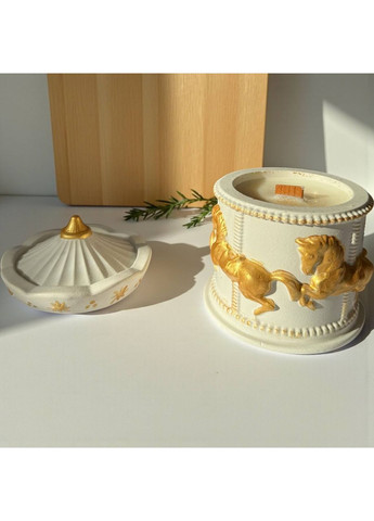 • Эксклюзивное Гипсовое Кашпо: напоминают карусель, что делает каждую свечу неповторимым украшением интерьера. Крышка также ручной работы.