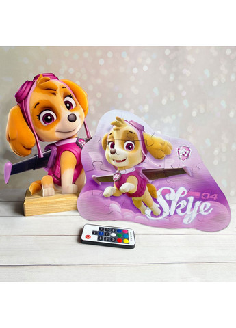 Подарочный комплект для тех, кто любит мультсериал Щенячий патруль и щенка Скай. Детский ночник Щенячий патруль. Скай - не только красивый подарок, но и отличное дополнение к интерьеру детской комнаты. Материал ночника - прозрачный акрил, основание - лакированный массив дуба. Нанесенная краска хорошо держится, не выцветает со временем. Вместе с красочным персонажем любимого мультсериала вы получаете многофункциональный светильник-ночник, в котором можно с помощью дистанционного пульта регулировать цвет подсветки, силу освещенности и режимы работы (постоянный или мигающий). Ночник легко подключить через USB разъем к павербанку, телефонному блоку питания, ноутбуку и т.д. Деревянные пазлы "Скай" - картинка Скай состоит из 16 разноцветных больших пазлов. В основе пазлов – качественное деревянное ламинированное основание толщиной 3 мм (высокая экологичность материалов, долгий срок эксплуатации). Все элементы качественно пропечатаны до мельчайших деталей. Краска на пазлах яркая, экологичная и устойчивая к истиранию, не выцветает на солнце. Большие пазлы удобны для собирания деткам от 2-х лет. Комплектация набора: Ночник "Скай": акриловая пластина с рисунком (27х15,3 см, толщина 3 мм) – 1 шт.; деревянная основа (дуб, массив, лакированная): 15,3х6х2,5 см - 1 шт.; пульт ДУ (на 17 кнопок) с батарейкой – 1 шт. Пазл "Скай": 16 больших разноцветных деревянных пазлов (картинка размером 28х20 см); многоразовый мешочек для хранения пазлов. Внимание! Блок питания не входит в комплект ночника. Подходит любой блок питания от мобильного телефона на 5В.