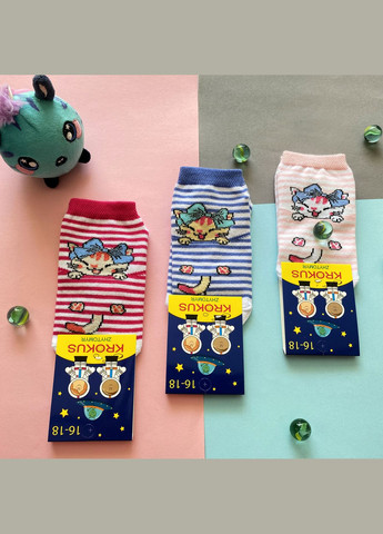 Детские носки обладают низкой посадкой, сочетают в себе комфорт, яркий дизайн. Изготовлены из гребеночного хлопка с добавлением эластана, которые придают уют и тепло ножкам ребенка, а цветные и веселые рисунки делают процесс ношения еще более интересным и веселым.