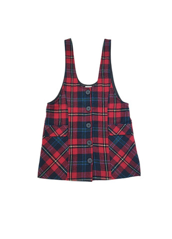 Яркий сарафан в классическую клеточку – стильный вариант для любого сезона. Модель выполнена из мягкой приятной к телу ткани. Прямой крой обеспечивает комфорт движений, а большие пуговицы спереди придают образу шарма. Два кармана с клапанами делают дизайн еще более интересным. Идеально подходит для сочетания с водолазками, блузками или футболками.