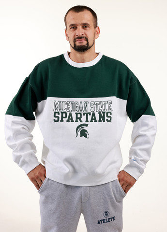 Свитшот без капюшона, крой как у толстовки, сшит из плотного трикотажа.