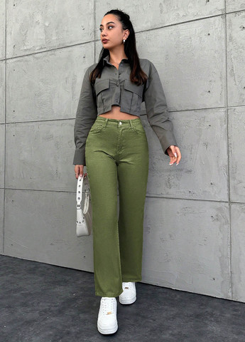 Цвет Темно-зеленый / Фасон Бойфренды / Высота посадки Высокая талия / Декор Без декора / Сезонность Лето