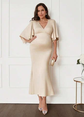 Цвет Бежевый / Фасон Юбочный / Стиль Вечерний, Праздничный / Узор Однотонный / Материал Полиэстер
