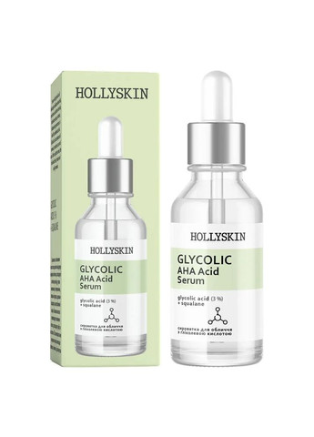 Сыворотка отшелушивающая для лица Hollyskin Glycolic AHA Acid Serum на основе гликолевой кислоты 50 мл Комплексный уход за кожей с применением высококонцентрированных средств – простой рецепт красивой кожи. Именно поэтому специалисты украинского бренда Hollyskin производят бьюти-продукцию, благодаря которой профессиональный уход возможен в домашних условиях. Сыворотка для лица на основе гликолевой кислоты – универсальное средство, поскольку решает широкий спектр задач. Проникая глубоко в кожу, продукт увлажняет, предотвращает потерю влаги, деликатно отшелушивает ороговевшие дольки эпидермиса и ускоряет процессы восстановления. Особенности Glycolic AHA Acid Serum от бренда Hollyskin: предназначена для жирной и комбинированной кожи; разглаживает и смягчает эпидермис; предотвращает появление возрастной и сезонной пигментации; бережно «шлифует» кожный покров; борется с сыпью; придает свежий, отдохнувший вид. Способ применения: при помощи пипетки нанести маленькое количество средства на лицо. Рекомендуется использовать 1 раз в день вечером (для чувствительной и тонкой кожи 1 раз в 2 дня). Объем: 50 мл