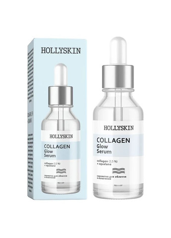 Сыворотка для лица омолаживающая Hollyskin Collagen Glow Serum с коллагеном 50 мл Классическая схема ухода «очистка/тонизирование/увлажнение» будет значительно более эффективной, если регулярно применять сыворотку для лица. Сбалансированная формула высококонцентрированного средства, изготовленная специалистами украинского бренда Hollyskin на основе молекул морского коллагена. Они встраиваются в коллагеновые волокна эпидермиса, восстанавливая их структуру изнутри. Это придает каждому покрову эластичность и упругость. Сыворотка также компенсирует потерю аминокислот и обеспечивает интенсивную гидратацию. Особенности Collagen Glow Serum от бренда Hollyskin: будет уместной для сухой, комбинированной и жирной кожи; содержит натуральную мику, дающую легкое природное сияние; выравнивает тон; разглаживает мимические морщинки; делает кожу нежной и шелковистой; придает упругость; разглаживает и подтягивает эпидермис; борется с возрастной пигментацией; лифтинг-эффект; ускоряет обновление клеток; практичная пипетка делает применение экономным; допускается осадок натуральных компонентов. Способ применения: с помощью пипетки нанести небольшое количество средства на лицо. Рекомендуется использовать 1 раз в день вечером (для чувствительной и тонкой кожи 1 раз в 2 дня). Объем: 50 мл