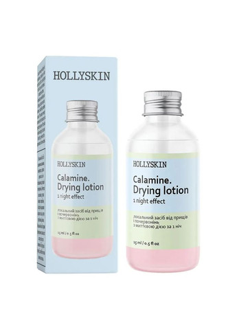 Локальное средство от прыщей и красноты с мгновенным действием за 1 ночь HOLLYSKIN Calamin Drying Lotion Эффективное средство для быстрого устранения прыщей и покраснения. Он содержит уникальный комплекс активных компонентов, действующих на разные причины возникновения прыщей: Розовый каламин - обладает противовоспалительными, антисептическими и подсушивающими свойствами. Он помогает уменьшить воспаление и покраснение, а также подсушить прыщики, чтобы они быстрее зажили. Камфора - обладает антисептическими, противогрибковыми и противовоспалительными свойствами. Она помогает уменьшить воспаление и отек, а также предотвратить распространение инфекции. Сера - обладает антисептическими, противогрибковыми и противовоспалительными свойствами. Она помогает уменьшить воспаление и отек, а также предотвратить распространение инфекции. Цинк - обладает противовоспалительными, антисептическими и бактерицидными свойствами. Он помогает уменьшить воспаление и отек, а также предотвратить распространение инфекции. Основные преимущества локального средства от прыщей и покраснения Hollyskin Calamin Drying Lotion: Быстрое устранение прыщей и покраснение: средство действует мгновенно, уменьшая воспаление и подсушивая прыщики. Предупреждение повторного возникновения прыщей: средство укрепляет кожный барьер, предотвращая появление новых высыпаний. Комфортное применение: средство имеет легкую текстуру и не оставляет жирных следов. Локальное средство от прыщей и покраснения Hollyskin Calamin Drying Lotion подходит для всех типов кожи, в том числе чувствительной. Его нужно использовать для точечного нанесения на прыщи и красноту. Рекомендованный способ использование локального средства от прыщей и покраснений HOLLYSKIN: Наносите на чистую сухую кожу. Перед использованием не встряхивайте бутылку! Это важно!!! Погрузите ватную палочку в розовый осадок на дне флакона. Точечно нанесите средство на прыщи и покраснение на чистую сухую кожу. Дайте средство высохнуть, чтобы оно могло действовать. Утром смойте теплой водой. Дополнительная информация о локальном средстве от прыщей и покраснений с мгновенным действием от Холлискин: Не используйте средство в области вокруг глаз и на губах. При попадании в глаза немедленно промойте большим количеством воды. Если вы случайно взболтали осадок, поставьте флакон с лосьоном на ровную поверхность, подождите, когда жидкость немного осядет, и затем используйте. ! ОБРАТИТЕ ВНИМАНИЕ - бренд Hollyskin использует следующий стандарт упаковки для локального средства от прыщей и покраснения Calamin Drying Lotion - флакон заполнен примерно на 70% (до верхней линии этикетки).