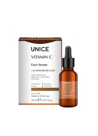 Подари себе по-юношески свежее и здоровое лицо! Сыворотка для лица UNICE с гиалуроновой кислотой и наиболее стабильной формулой витамина С (аскорбилфосфатом) уменьшает проявления пигментации, предотвращает появление морщин, замедляет фотостарение и надежно защищает кожу от разрушающего воздействия окружающей среды. Глубоко увлажняющее и освежающее действие сыворотки улучшает упругость кожи, выравнивает ее тон и борется со следами постакне. Оказывает мягкий осветительный эффект. Гиалуроновая кислота в составе продукта поддерживает надлежащий уровень влаги в клетках кожи, повышает ее тонус и естественное сияние. Подходит для всех типов кожи. Без парабенов.
