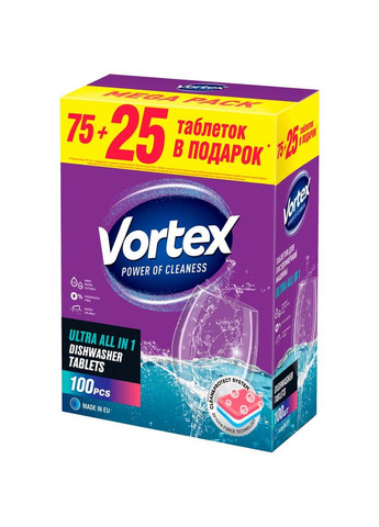 Забудьте о множестве моющих средств – с таблетками для посудомоечных машин Vortex All in One вы получаете все необходимое для безупречной чистоты.