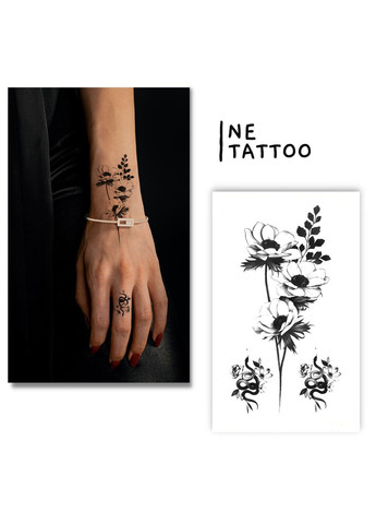 Тату смотрится на теле, как настоящее, они водостойкие и держатся на теле от 3х до 7 дней (в зависимости от места нанесения).