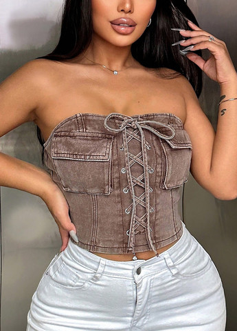 Топ со шнуровкой на декольте смотрится очень соблазнительно!