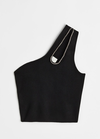 Топ с рукавами имеет ассиметричный край и декольте, а также эластичную полиэстеровую ткань для комфортной посадки. Он имеет приталенный дизайн, доступный в черном цвете, создан как для сексуального, так и для повседневного образа. Ассиметричное разделение придает общей модной привлекательности этого топа на одно плечо, украшенное стразами.