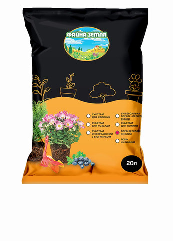 Кислый торф подходит для выращивания растений, которые любят кислую почву, семейства вересковых, голубика, черника, клюква, брусника, хвойные растения, рододендроны и т.д., как в закрытом так и в открытом грунте.Упаковка: 20 литров.Состоит:• из смеси высококачественных торфов различной степени разложения с добавлением природных структурирующих компонентов (очищенного речного песка),• комплексного минерального удобрения, которое содержит необходимый состав макро- и микроэлементов в доступной для растений форме.Лишен патогенной флоры и фауны.• Фракция, мм: 0-15• рН 2,8-3,6Азот – 30-50 мг/л, Фосфор – 20-40 мг/л, Калий – 5-15 мг/л.Условия хранения: хранить в оригинальной упаковке в сухом, прохладном месте, защищенном от воздействия прямых солнечных лучей и влаги.Производитель: Peatfield (ТМ ECO Plus), Украина.