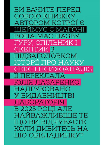 Гениальная и остроумная книга о переплетенных судьбах ПСИХОАНАЛИТИКА ЕРНЕСТА ДЖОНСА, ХИРУРГА ВИЛФРЕДА ТРОТТЕРА И ГУРУ ПСИХОАНАЛИЗА ЗИГМУНДА ФРОЙДА Умный, уверенный Эрнест Джонс был ближайшим соратником и ярым учеником Зигмунда Фрейда. Джонс пропагандировал психоанализ как своеобразную светскую религию. Тем временем муж его сестры Уилфред Троттер — знаменитый хирург, спасший жизнь Георга V, и ставший врачом Фрейда во время его лондонской ссылки — не поддался волшебству фрейдизма. Он не воспринимал ловких карьеристов от медицины, не доверял грандиозным теориям, был лишен тщеславия и самовлюбленности, что действовало как своеобразная «вакцина» против Фрейда. От первого психоаналитического конгресса в Зальцбурге до болезни короля Георга и первой встречи Фрейда и Троттера Шеймус О'Магони не просто рассказывает историю трех выдающихся фигур, но и раскрывает все секреты сексуальных одержимостей интеллектуальных и богемных кругов Лондона, Кембриджа. «Гуру, сообщник и скептик» охватывает тридцать переломных лет европейской истории, среди которой и творил неудачник-невропатолог из Вены, получивший мировое влияние. ПОЧЕМУ СТОИТ ПРОЧИТАТЬ КНИГУ «ГУРУ, СООБЩИК И СКЕПТИК»? * Потрясающая история трех выдающихся фигур XX века – Зигмунда Фрейда, его ревнителя Эрнеста Джонса и скептика-хирурга Уилфреда Троттера. * Уникальный взгляд на психоанализ не только как революционное учение, но и как часть интеллектуальной среды Европы XX века. * Книга погружает в культурную жизнь Лондона, Кембриджа и Вены начала XX века, охватывая драматические события: от первых психоаналитических конгрессов до перемен в мировой политике и медицине. * Шеймус О'Магони раскрывает не только интеллектуальные идеи эпохи, но и человеческие слабости и одержимости своих героев. * Помогает понять, как идеи Фрейда и его окружения повлияли на современную медицину, психологию и культуру. > «О'Магони гениально исследует взаимосвязи между тремя врачами: Фрейда, которого многие до сих пор считают одним из самых влиятельных мыслителей XX века; Джонса, которого сейчас помнят только как «бульдога» Фрейда; и, наконец, Троттера, мастера и учителя, которого сейчас почти не помнят. - Профессор Эндрю Лес > «Удивительно честная и человечная книга, которая бросает вызов и в то же время глубоко > важна.» - GUARDIAN > «Насыщенная, смешная и порой печальная история о слепой вере, сексуальной одержимости, гордыне и погоне за славой и богатством.» - Literary Review > «По-бунтарски воспроизводит зарождение психоанализа... Великолепная книга.» - The > Telegraph