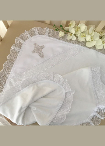 Велюр, по французскому языку - бархат, ранее доступен только знати, сегодня мы предлагаем его нашим самым дорогим деткам. Начать свой путь в этот мир, объятым изысканным крестцом из жаккардового велюра это хорошее начало. И конечно, королевский знак, бережно вышитый нашими мастерицами, в верхнем уголке крестца, дополняет особенность и важность личности малыша. Умело оттеняет бархатное полотно крестца натуральное кружево. Сочетание двух качественных натуральных тканей, хорошо циркулирует воздух и впитывает влагу, которая согреет малыша после купели, и украсит церемонию Крещения.