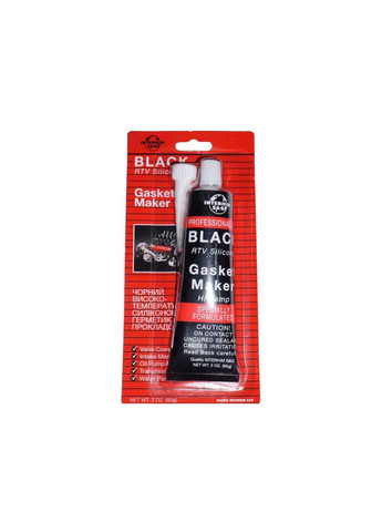 Клей-герметик черный вулканизующийся при комнатной температуре. Основным компонентом являются кремнийорганические соединения, силикон и разнообразные добавки. Создает уплотняющий слой почти мгновенно, принимает любую форму, быстро затвердевает. Герметизирует крышки цепи синхронизации и крышки дифференциала; щели между вытяжкой котла и стеной; также используют для приклеивания огнеупорного защитного материала у котлов. После высыхания остается эластичным. Выдерживает темп. 260 градусов.