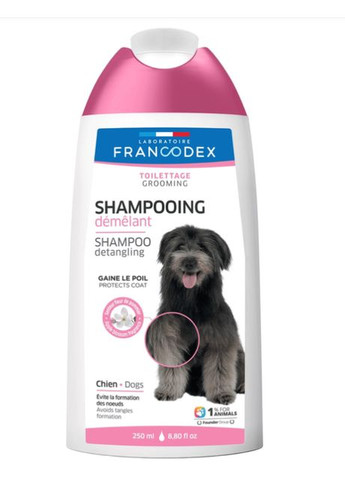 LABORATOIRE FRANCODEX LONG COAT SHAMPOO (Шампунь для собак с длинной шерстью Лаборатуар Франкодекс) с маслом ши распутывает шерсть и делает ее мягкой и шелковистой. Благодаря нейтральному pH, он нежно очищает и сохраняет естественное увлажнение кожи даже при частом использовании. Достоинства: Формула с маслом ши Распутывает и придает блеск шерсти Нейтральный pH Применение: Перед использованием взболтать. Тщательно смочите шерсть теплой водой, нанесите небольшое количество шампуня и вотрите в шерсть и кожу, чтобы пена равномерно распределилась. Оставьте на несколько минут, затем тщательно смойте. Повторите операцию и высушите. Только для наружного применения. Не глотать. Хранить в недоступном для детей и животных месте.