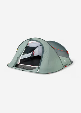Быстрое разложение, комфорт, много места. Новая система вентиляции, ткань Fresh&Black, много места для хранения, большая апсида, оптимальный комфорт во время кемпинга. ОСОБЕННОСТИ Самонесущаяся конструкция. Развернуть через 2 секунды. Система сборки. Размеры крышки: диаметр 74 см. Вес: 5 кг. Запатентованная ткань Fresh&Black блокирует солнечный свет. Сопротивление ветру 50 км/ч (Force 6): испытание в аэродинамической трубе. Спальня 140 Х 210 см. полезная высота: 100 см. Много мест для вещей. Простынь, механическая вентиляция и ткань Fresh & Black. Т-образный ползунок внутренних дверей. - водонепроницаемый (Schmerber): Flysheet > 2000 мм. Полы > 2400 мм. Технология Fresh & Black Fresh & Black – это запатентованная разработка Decathlon. Материал отражает солнечные лучи и изолирует от света. Чтобы получить максимальную отдачу от технологии, не забывайте проветривать палатку вечером! Качание / сборка палатки Быстро и легко установить палатку. Снимите палатку с чехла, снимите желтую полоску, палатка начнет открываться. Затем расстегните пряжки (2 синих и 2 коричневых) и, наконец, вставьте шпильки. Палатка легко складывается благодаря системе наведения. Какой матрас для этой палатки? Мы рекомендуем самонадувающийся коврик или трекинговый матрас с макс. Ширина 70 см. не рекомендуем надувные матрасы толщиной более 8 см из-за большого уменьшения пространства в палатке. Новая система вентиляции 1/2 Новая боковая и задняя система вентиляции открывается прямо, как палатка за 2 секунды! Боковая вентиляция: расстегните молнию на первой тканевой панели, а затем на вторую москитную сетку, чтобы получить доступ к легкой открывающейся боковой вентиляционной молнии. Новая вентиляционная система 2/2 Вентиляция сзади: расстегните красную молнию, снимите задний крючок, затем закройте молнию, чтобы защитить внутреннюю часть палатки от насекомых. Затем просто потяните за 2 шнура, чтобы открыть заднее вентиляционное отверстие. Легкий вход и выход Дверь спальни, оснащенная Т-образной молнией, позволяет легко выйти и попасть в палатку, не беспокоя соседей по комнате. Они также помогают удерживать тьму внутри, даже когда они открыты. Уровень водонепроницаемости Чтобы проверить его водонепроницаемость, палатку поместили в душ на 3 часа (200 л воды в час, что эквивалентно тропическому дождю в 200 мм в час). Флайшкот изготовлен из полиэстера с полиэстеровым покрытием 2000 мм, все герметичные швы. Устойчивость к ветру Палатка была испытана в аэродинамической трубе на вращающейся платформе, чтобы выставить каждую сторону палатки на ветер. Правильно поставленная палатка с хорошо натянутыми всеми шнурами может выдерживать скорость ветра 50 км/ч на земле (сила 6). Содержимое - 1 спальня в сборе, - 1 водонепроницаемый лист, - 10 шпилек, - 5 веревок, – 1 чехол. Состав Основная ткань: 75,0% полиэстер, 25,0% полиэтилен Рама: 100,0% стекловолокно