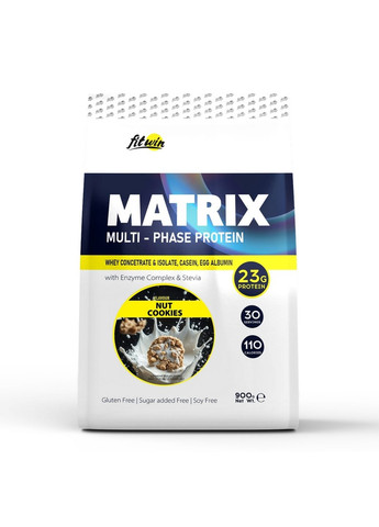 FitWin Matrix – это ультрафункциональный протеиновый комплекс, обеспечивающий вас высококачественным белком в каждой порции. MATRIX содержит ключевые источники белка: концентрат сывороточного белка, мицеллярный казеин, яичный альбумин и изолят сывороточного белка, обеспечивающие длительное насыщение мышц после тренировки. Естественные ферменты (папаин, бромелайн, лактаза) добавляются для лучшего усвоения белков организмом.Особенности Matrix от FitWin:Высокое содержание белка (77%): обеспечивает надежную поддержку мышц и способствует их восстановлению.Полный спектр аминокислот: обеспечивает комплексное питание мышечной ткани, важное для восстановления и роста.Различные источники белка: обеспечивают постепенное высвобождение аминокислот для длительного насыщения.Легкая растворимость и приятный вкус: делает употребление протеина приятным и удобным даже в самый насыщенный день.Matrix подходит для всех, кто стремится добиться максимальных результатов в фитнесе, независимо от уровня подготовки. Этот протеиновый комплекс поможет вам почувствовать себя более сильными, выносливыми и быстрее достичь поставленных целей.Преимущества Matrix FitWin:Максимальная поддержка мышц благодаря высокому содержанию белка.Эффективное восстановление после тренировок благодаря широкому спектру аминокислот.Удобство применения: идеально подходит для быстрого перекуса или восстановительного шейка после тренировки.Как принимать Matrix FitWin:Рекомендуется смешивать одну порцию (30 грамм) MATRIX с водой или молоком в шейкере и принимать сразу после тренировки для оптимального восстановления. Также можно включать протеин в свой рацион между основными приемами пищи для обеспечения равномерного аминокислотного потока в течение дня.Содержание элементов в 1й порции30 грамм, Калории 110 ккал, Жиры 1.4 г, - насыщенные 0.5 г, Углеводы 1.3 г, - сахар 0.4 г, Белок 23.1 г, Соль 0.1 г, L-Валин 1.4 g (г), Комплекс фирментов 150 мг, , L-гистидин 0.5г, L-лизин 1.8 г, L-Метионин 0.6 г, L-Фенилаланин 0.9 г, L-треонин 1.6 г, L-триптофан 0.4 г, L-Аланин 1.1 г, L-Аргинин 0.6 г, Аспарагиновая кислота 2.1 г, L-цистеин 0.5 г, Глютаминовая кислота 4.1 г, Глицин 0.4 г, L-пролин 1.7 г, L-серин 1.2 г, L-Тирозин 0.7 г, , Ингредиенты, Концентрат сывороточного белка (37%) [молоко], мицеллярный казеин (25%) [молоко], яичный альбумин (18%) [яйца], изолят сывороточного белка (15%) [молоко], натуральный ароматизатор, загуститель – ксантановая камидь эмульгатор – моно- и диглицериды жирных кислот, комплекс пищеварительных ферментов (0.2%) (лактаза, папаин, бромелайн), натуральный подсластитель – стевиол гликозиды из стевии, натуральный пищевой краситель, подсластитель – сукралоза., , Состав может незначительно отличаться в зависимости от вкуса.