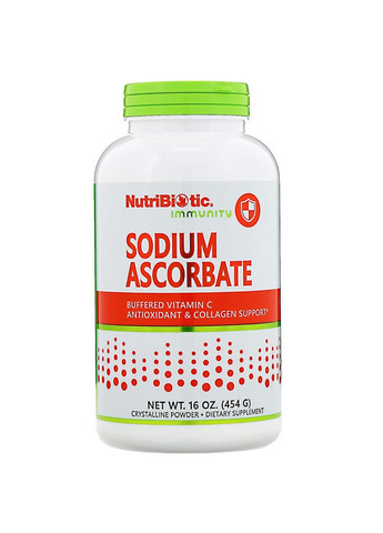 Аскорбат натрия NutriBiotic производится путем растворения L-аскорбиновой кислоты в природном гидрокарбонате натрия. Натрий в этом продукте отличается от обычной поваренной соли, так как он без хлора. Аскорбат натрия NutriBiotic в капсулах идеально подходит для людей, которым нужна щелочная (буферизованная) форма витамина С.