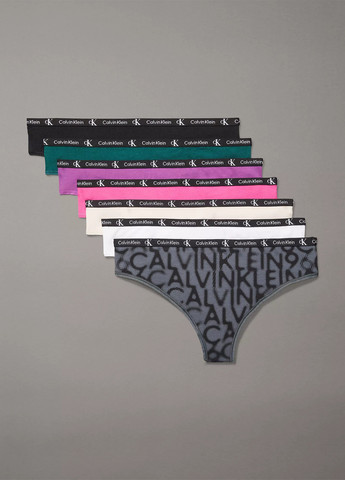 Набор женских трусиков Calvin Klein. Усиленная классика. Calvin Klein 1996 отличается смелыми принтами и цветами, а также культовым логотипом с монограммой. Комплект изготовлен из сверхмягкой эластичной хлопковой смеси для гибкого и дышащего комфорта с эластичным поясом, полной ластовицей и минимальным покрытием сзади для современной эстетики. Набор из 7 трусиков танга. Цвета: 1 серые, 3 белых, 3 черных. Трусики приятные к телу, невесомые. Эластичный пояс с фирменным логотипом. Средняя посадка. Отличное качество. Машинная стирка.