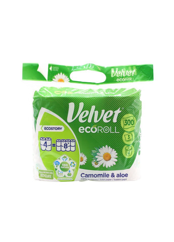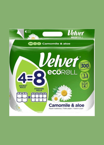 Туалетная бумага Velvet Camomile and Aloe ecoROLL — это экологически чистый, мягкий продукт, состоящий из трех слоев тонкой тонкой бумаги и обогащенный мягким ароматом ромашки. Благодаря элегантному тиснению и принту она станет прекрасным украшением вашей ванной комнаты. Бумага создавалась с заботой о природе, поэтому четыре рулона двойной длины - ecoROLL заменяют восемь обычных бумажных рулонов. В результате для упаковки ecoROLL было использовано меньше пластика, что привело к сокращению производимых отходов. Кроме того, продукт занимает меньше места при транспортировке, что означает меньшее количество грузовиков для перевозки продуктов и, таким образом, снижение выбросов выхлопных газов в воздух. Безусловно, это уникальное предложение: удобство, экономия и экологичность!